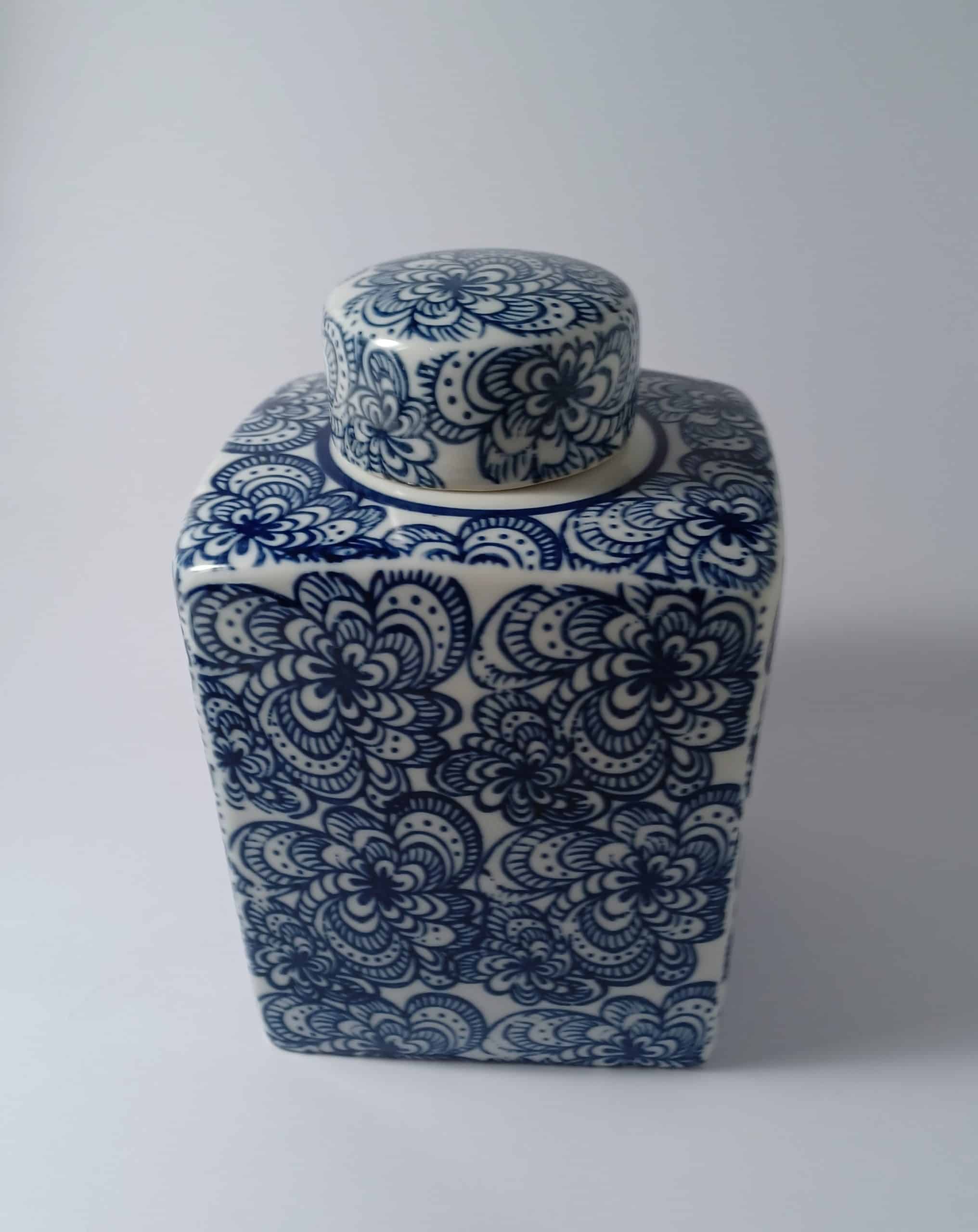 Blue and White Ceramic Jar with Lid