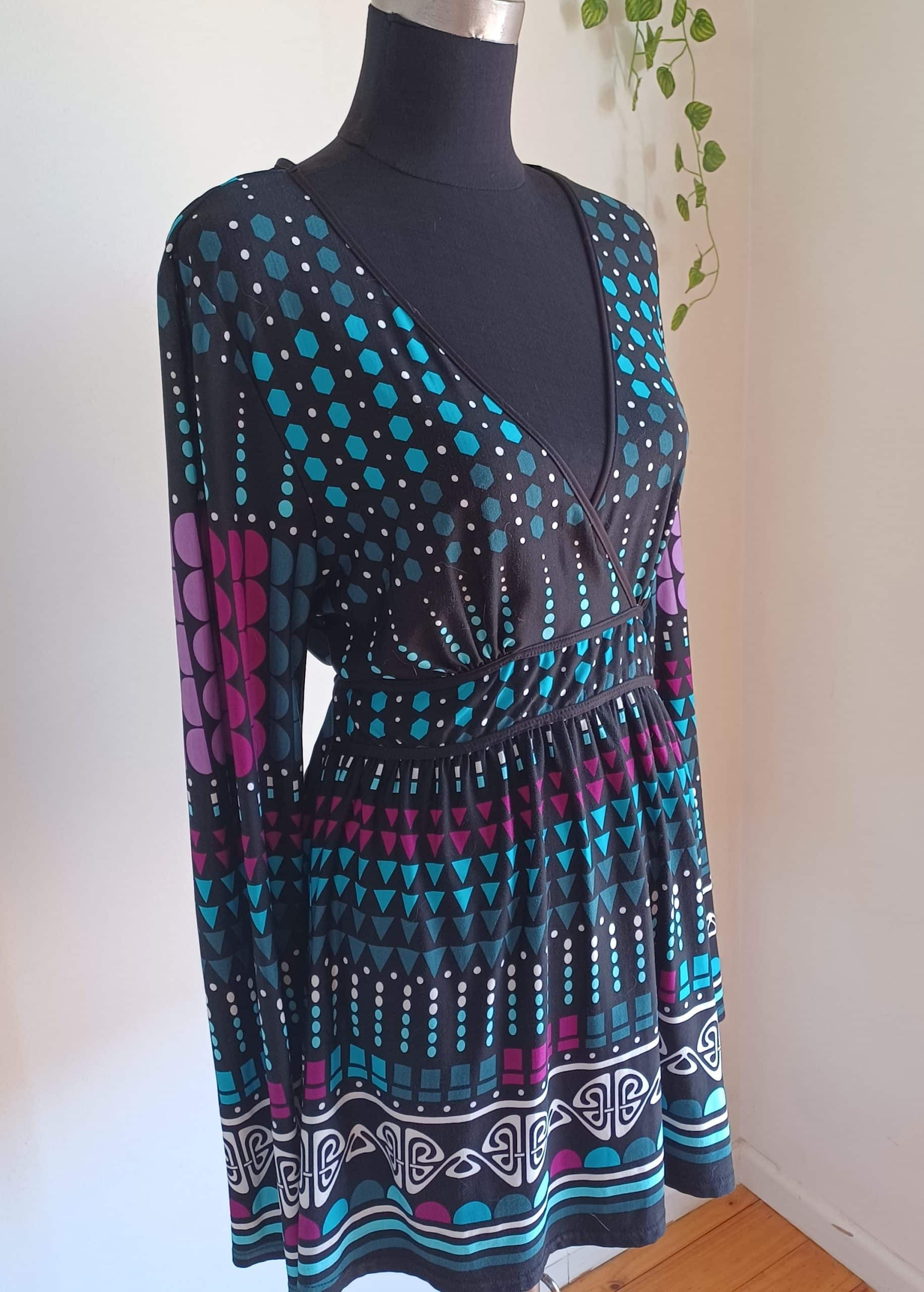 Retro print Long sleeve top or dress Type: Top Make:Kelso Career Size: 14