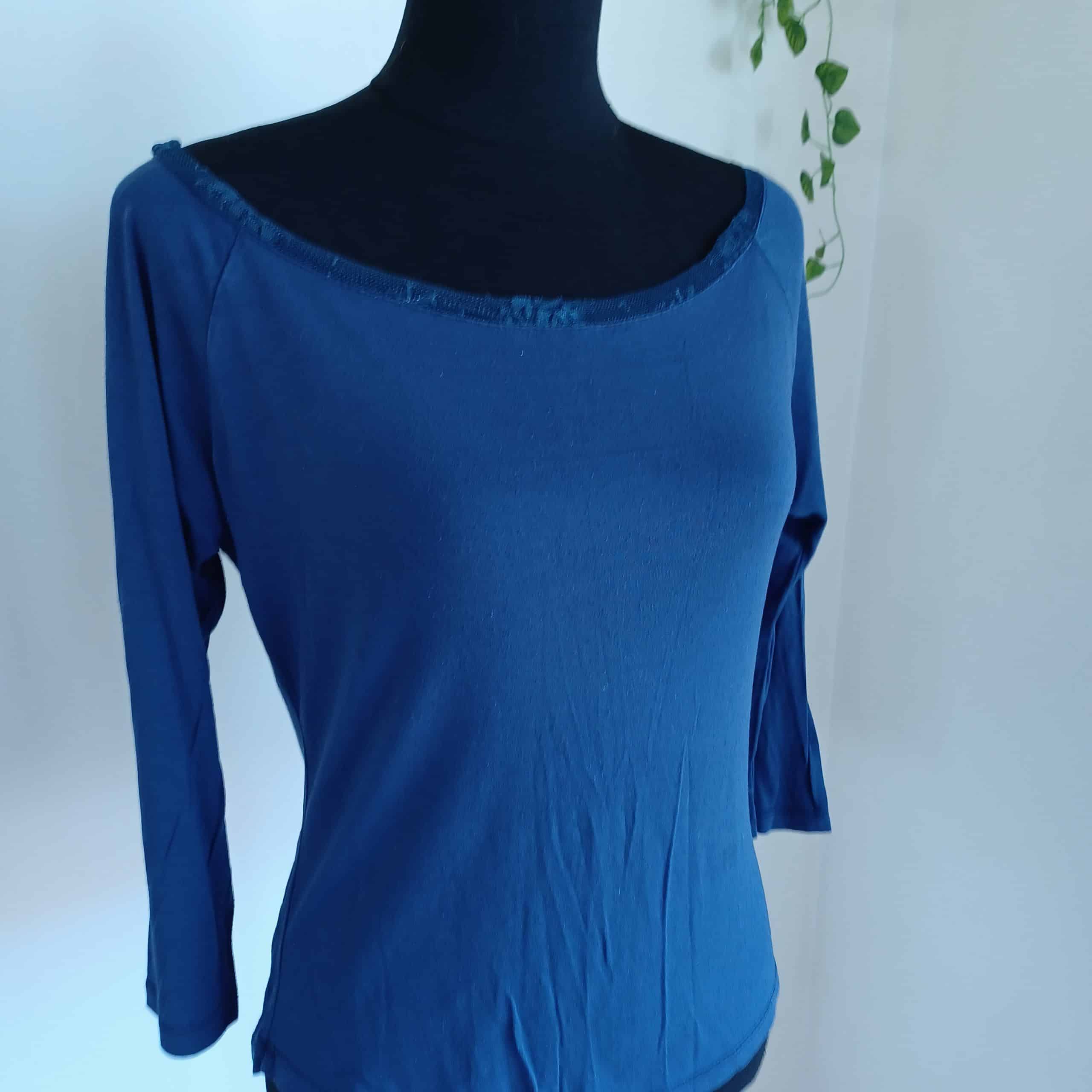 Crazy Wool - Royal Blue Top with Lace Trim Neckline - Size: M quantity