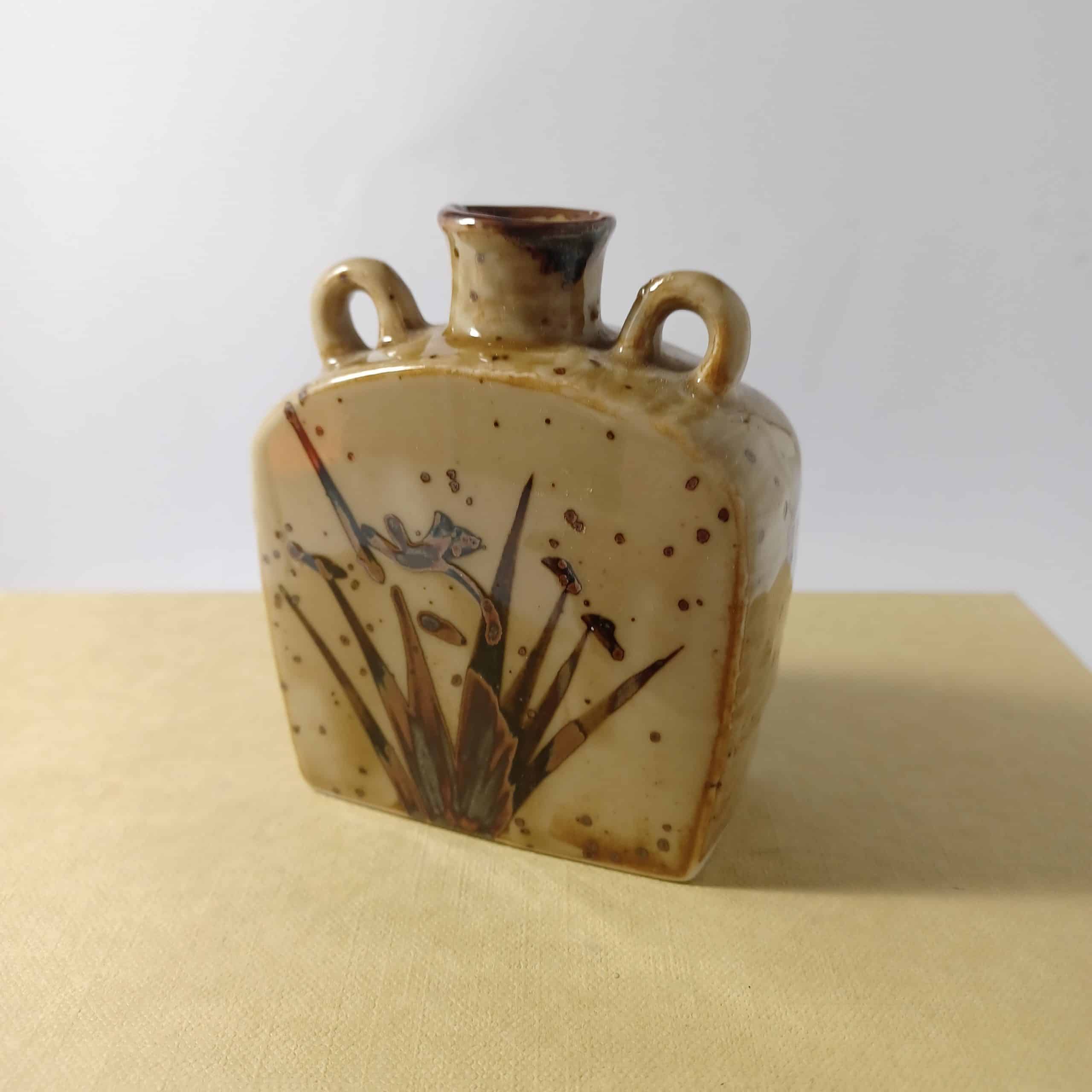 Small Vintage Stoneware Hand painted “Folk Art” Bud Vase