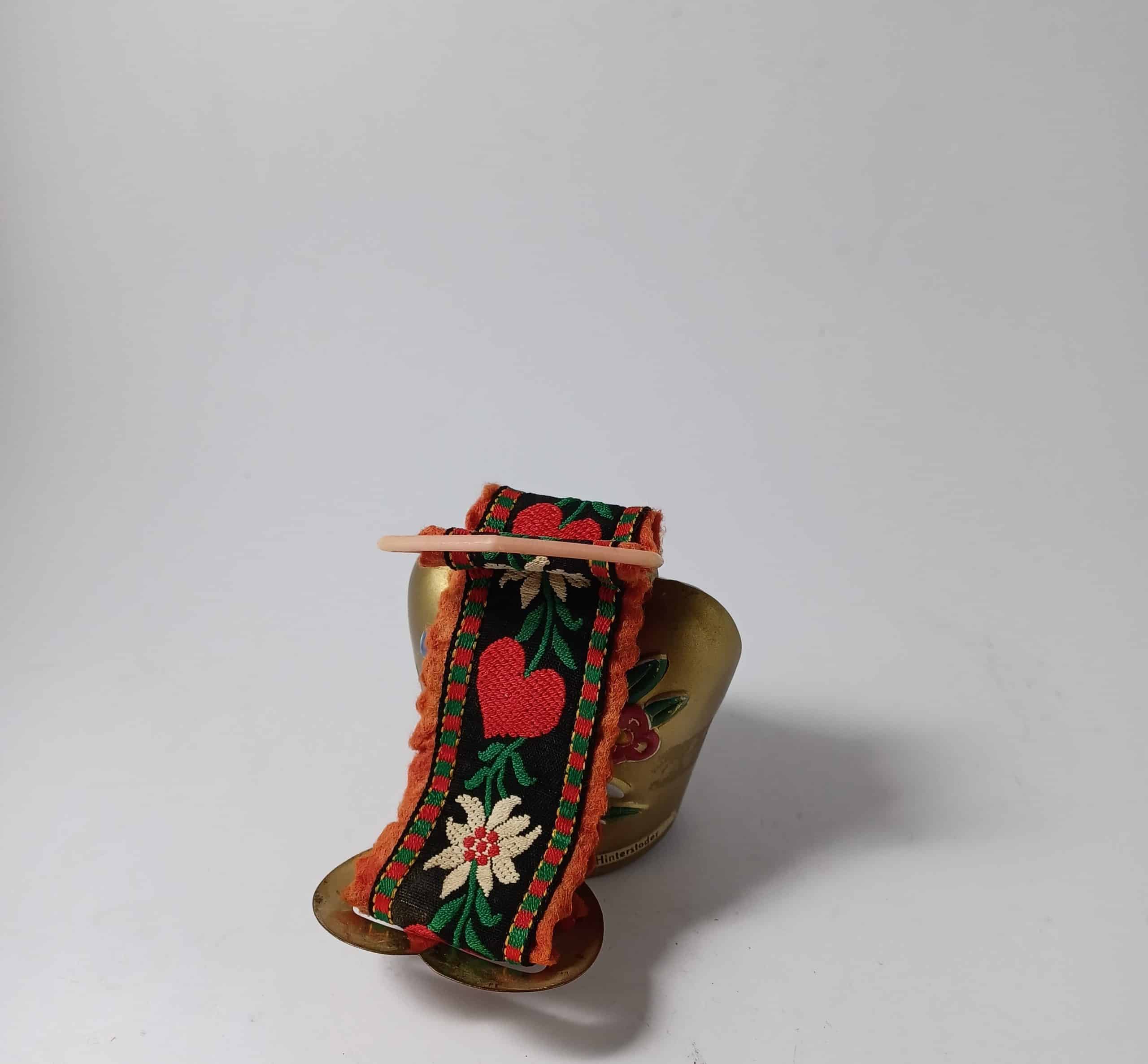 Cowbell Cadence with Embroidered Sash:Add a jingle to your decor with this Vintage Cow Bell adorned with an embroidered sash. A rhythmic touch of vintage charm.